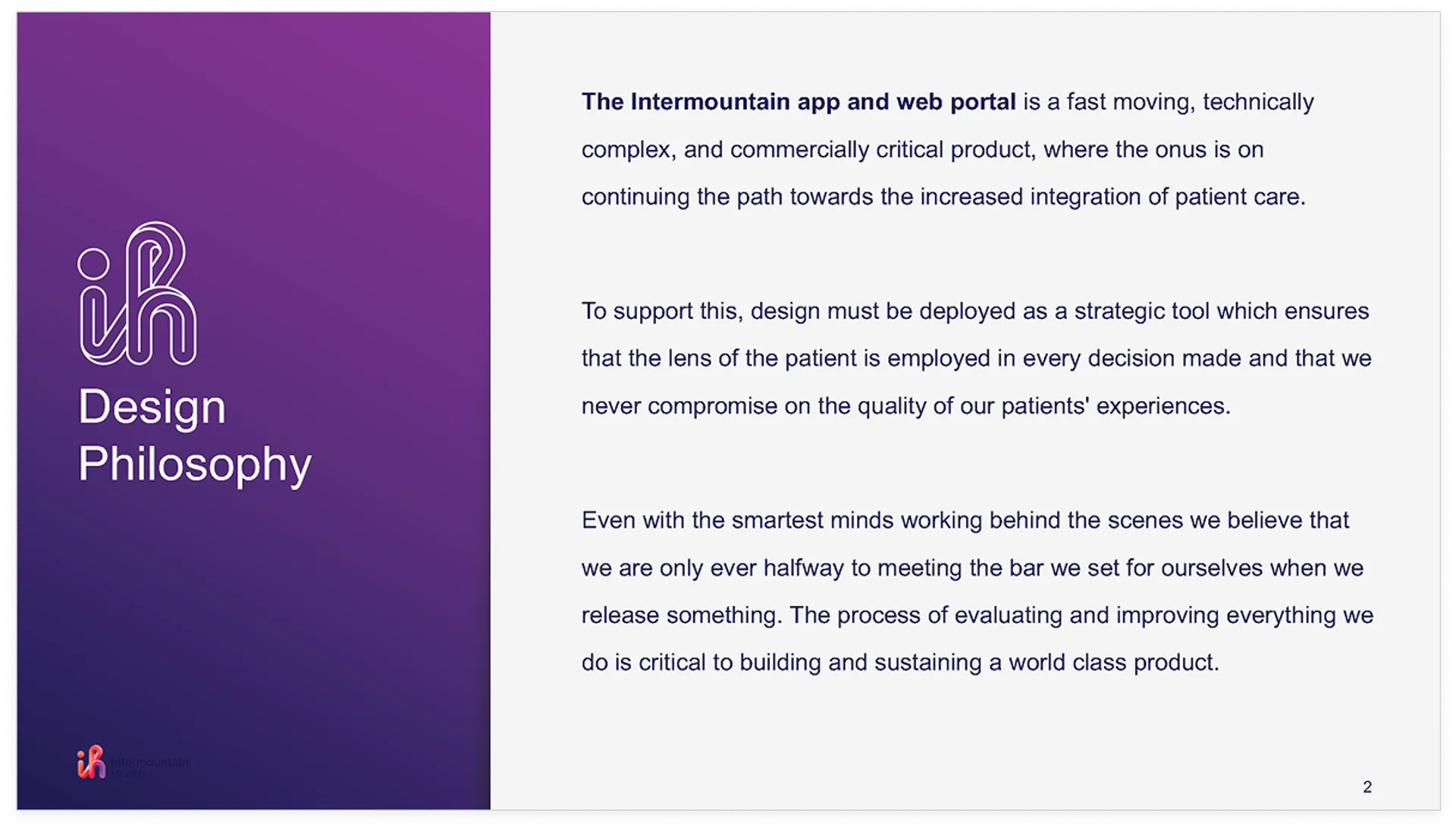 • Established a strategic, user-centered design process rooted in principles of simplicity, empathy, consistency, precision, and innovation.